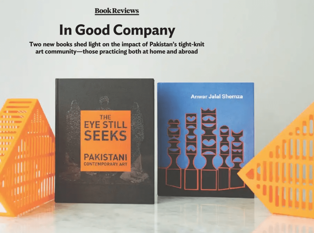 – “‘Anwar Jalal Shemza’ and ‘The Eye Still Seeks’,” (book review), ArtAsiaPacific, January 2016: “As other writers in this volume explain, after receiving his degree Shemza’s first priority was to return to Pakistan and to the fraternal fold that, five decades later, The Eye Still Seeks so potently describes.” Full review here.